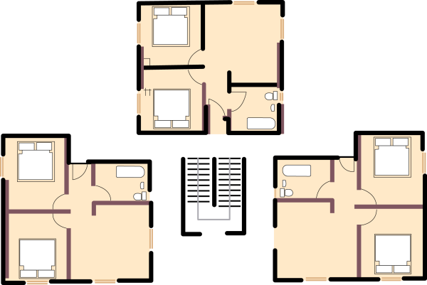 Type D Block consists of 2 one bedroom apartments of 32sqm per floor AND 1 two bedroom apartment of 38sqm per floor AND one 30sqm bachelor flat on the 1st and 2nd floor. The block is three floors high.